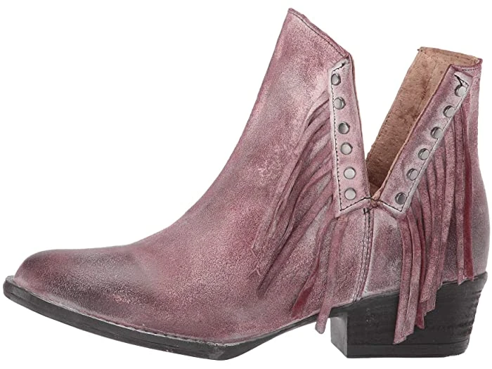 Distressed Wine Ankle Boot with Fringe and Stud Detail.