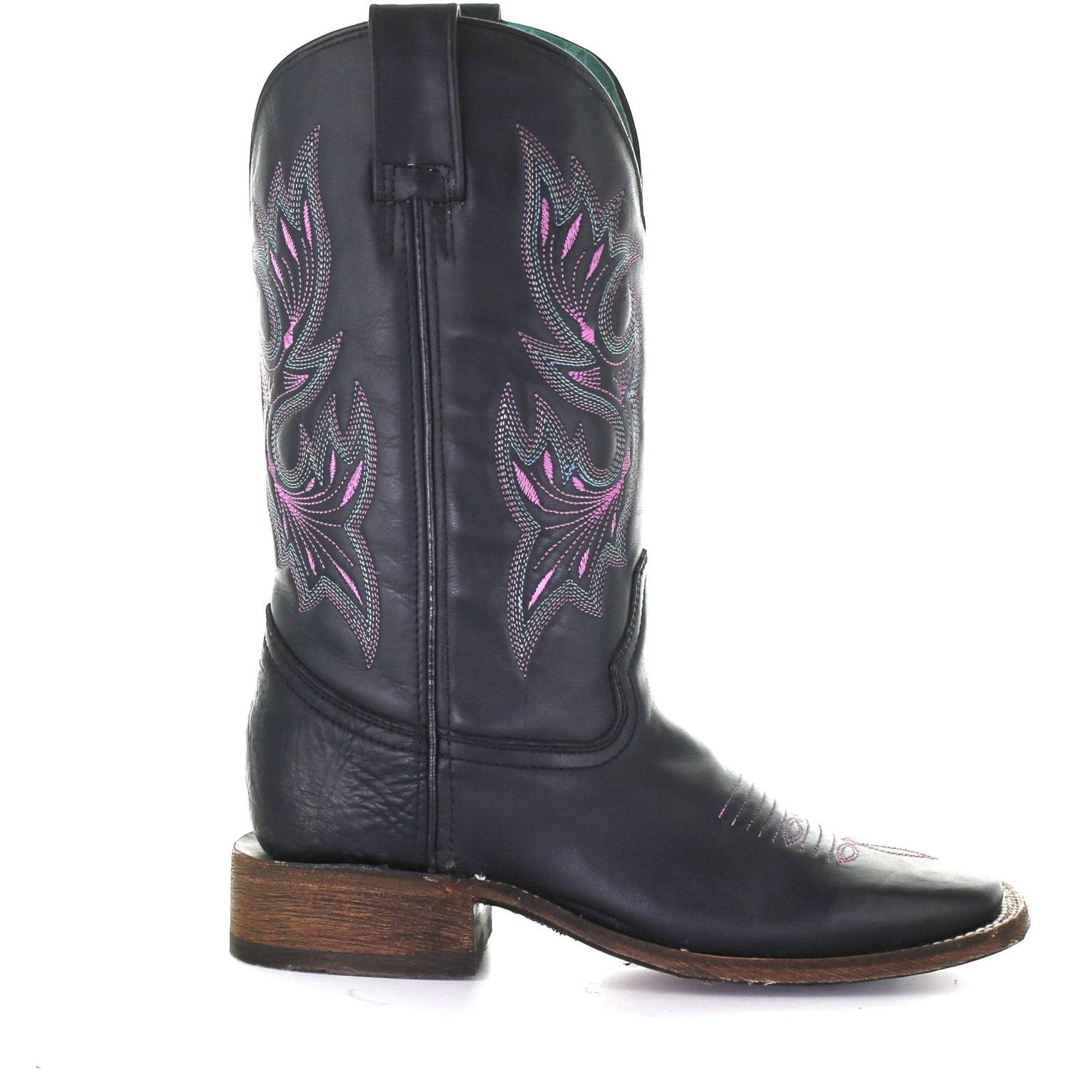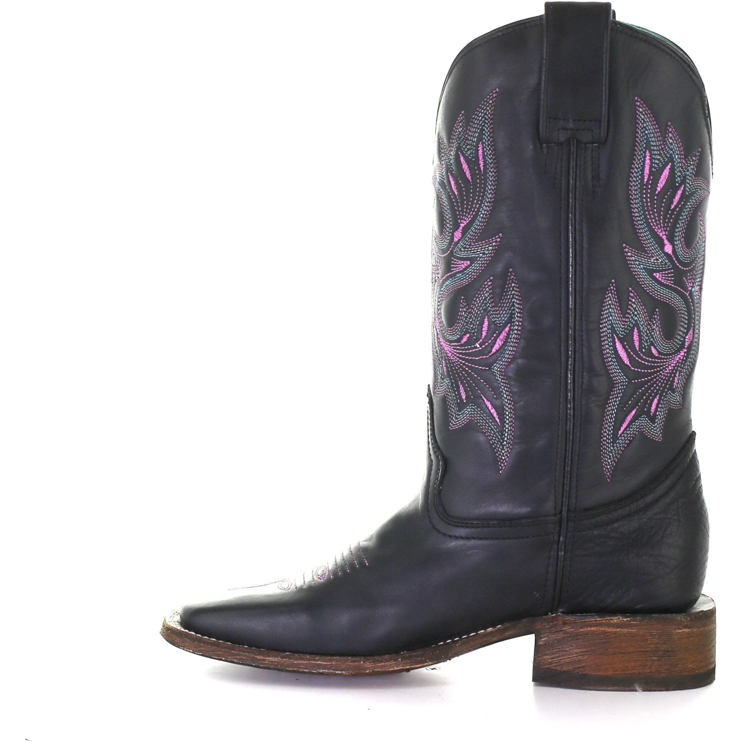 Black Western Boot with Lilac Stitching.