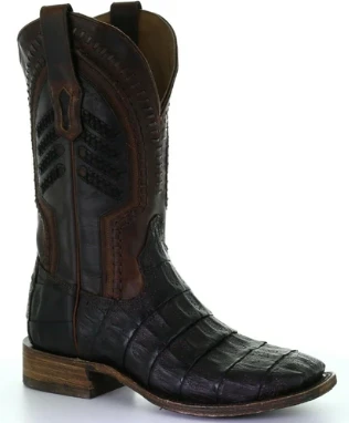 Oil Brown Caiman and Oiled Brown Leather Western Boot.