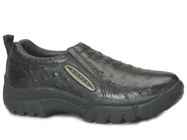 Black Faux Ostrich Leather Performance Sport Slip On.