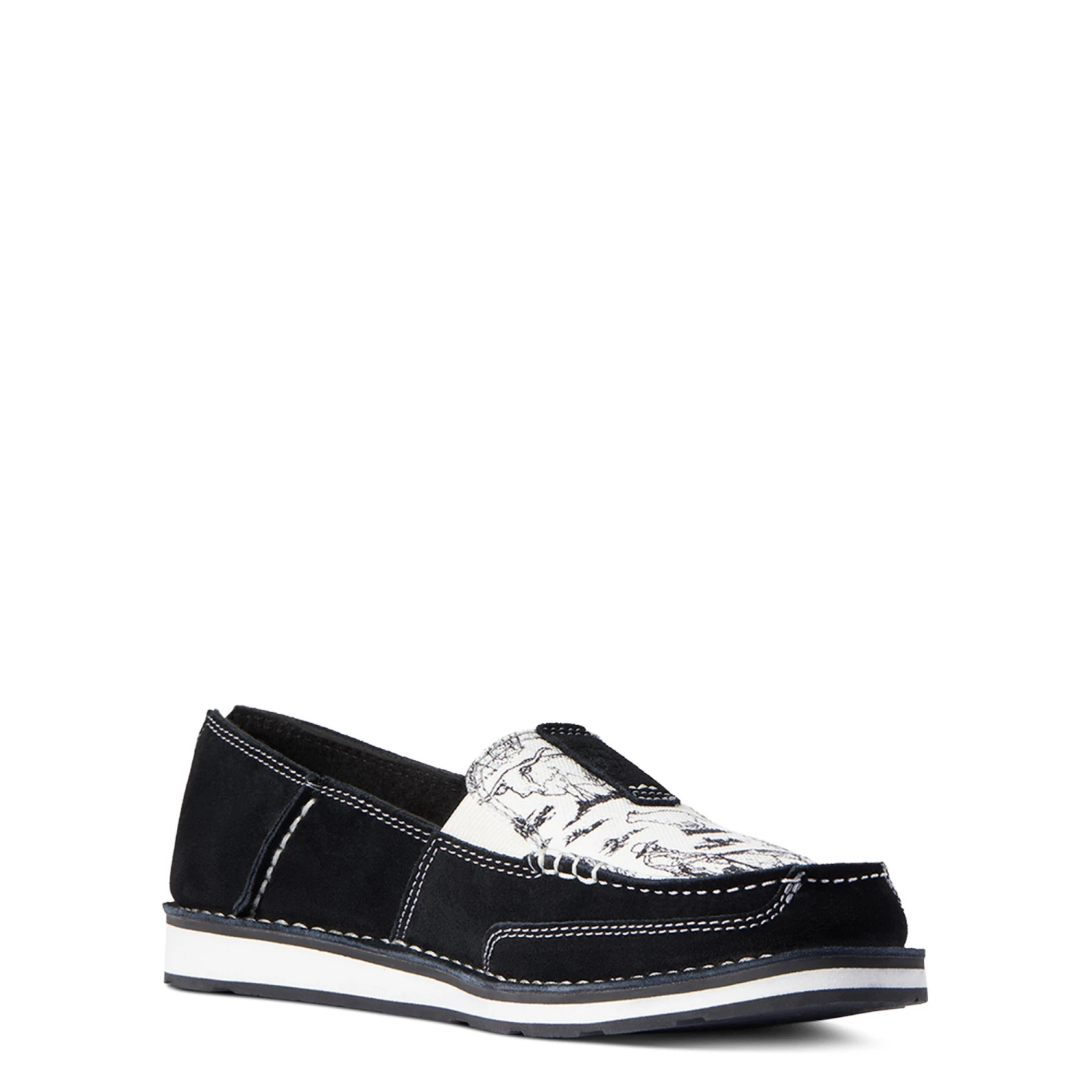 Black Suede and Black Tumbleweed Print Cruiser Shoe.