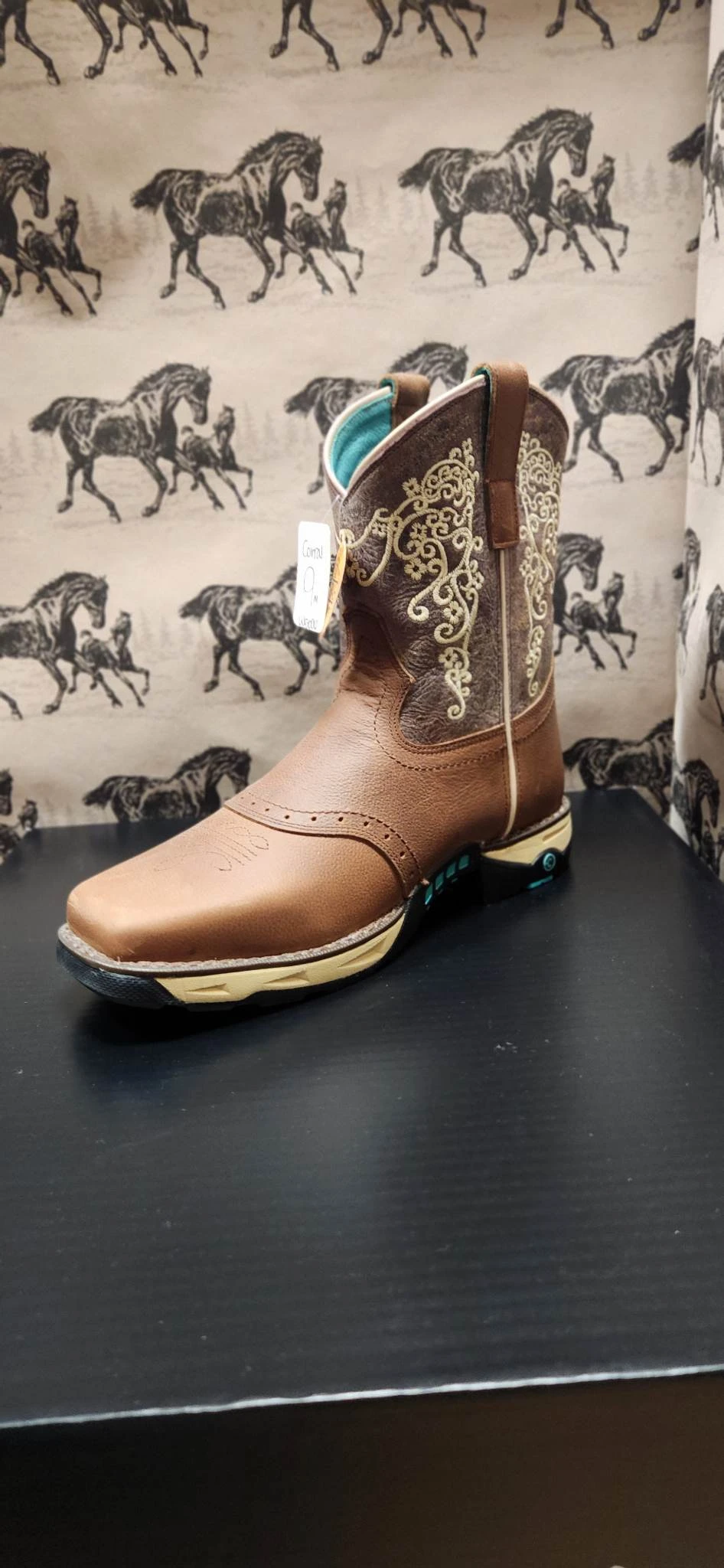Brown with Floral Embroidery Hydro Resistant Work Boot.