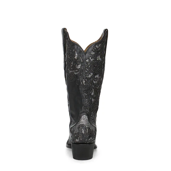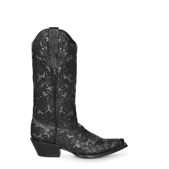 Black Full Floral Inlay Western Boot.