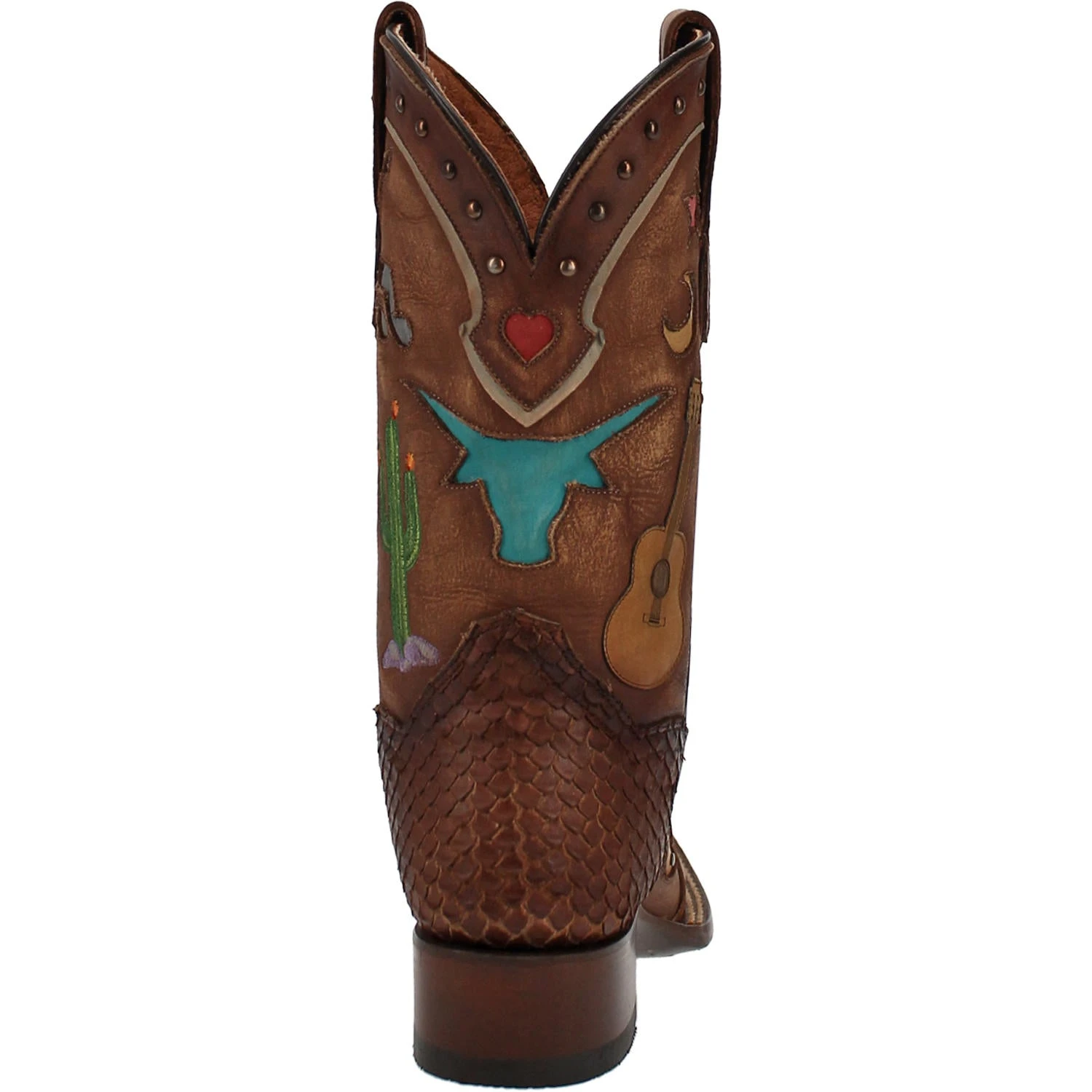 Tan Western Dream Western Boot with All Over Colorful Inlays.